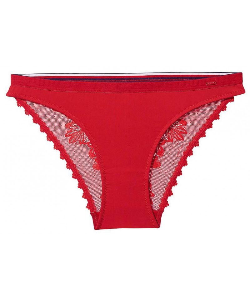 Σλιπάκι mini με την υπογραφή της Tommy Hilfiger σε κόκκινο χρώμα. Εντυπωσιακό σλιπάκι με floral δαντέλα στο πίσω μέρος και μαλακό λάστιχο στη μέση με μετάλλικό patch το logo της Tommy Hilfiger.