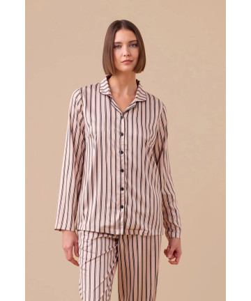Γυναικεία Πιτζάμα Ριγέ Σατέν Μακρύ Μανίκι Noidinotte FA8923